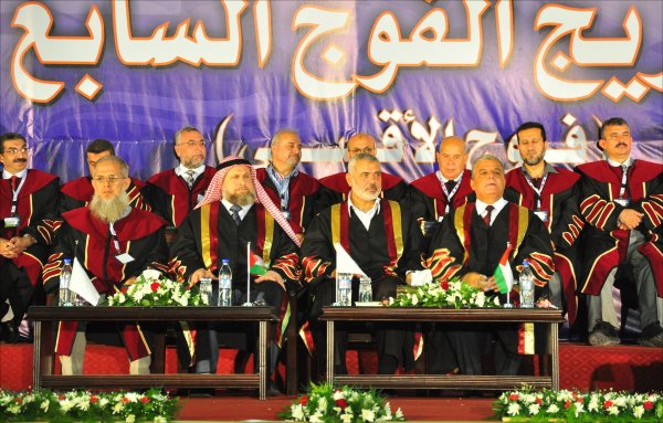 السادة: د. سلام زكريا الأغا(القائم بأعمال رئيس جامعة الأقصى)، رئيس الوزراء أ. إسماعيل هنية،