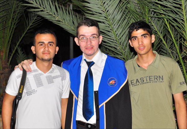 الخريج مع صديقيه قاسم سامي الأغا و وسام زهير الأغا