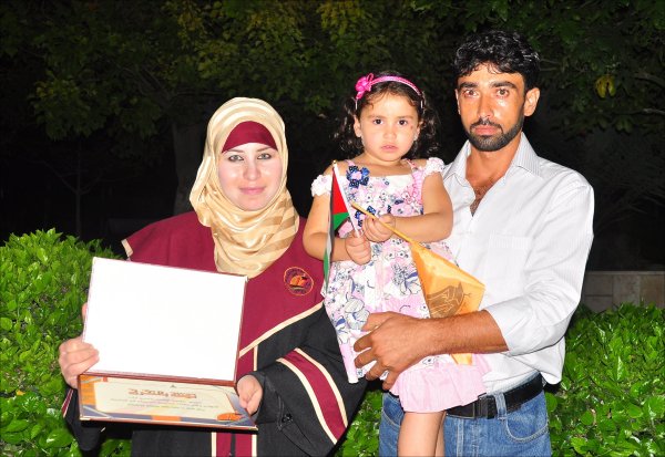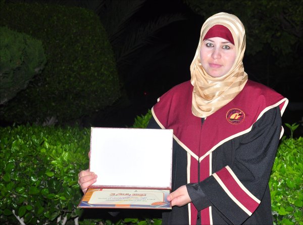 تخرج الطالبة عبير خليل أحمد الأسطل زوجة السيد حمادة توفيق محمد عثمان الأغا،