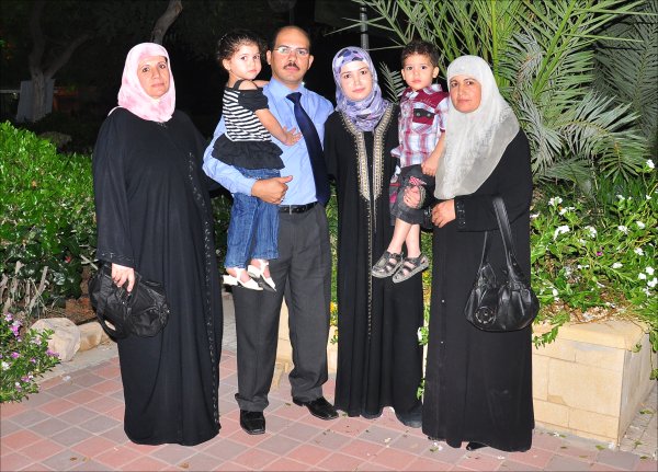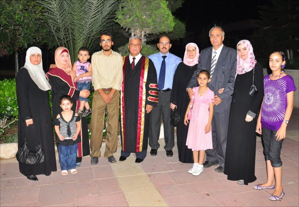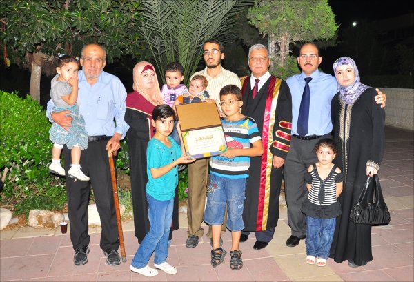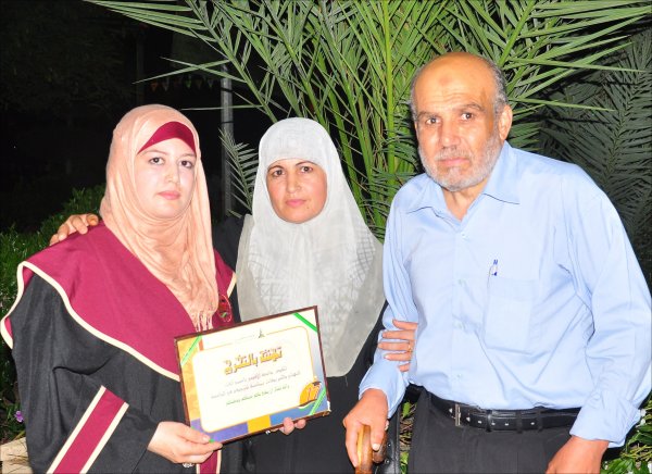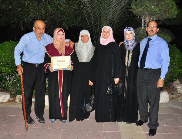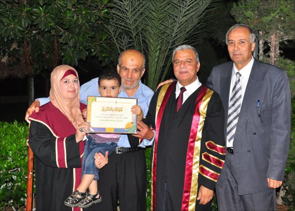 السادة: أ. وضاح أحمد الأغا وزوجته، أ. نابغة أحمد الأغا(أم وسام)، والدة الخريجة،