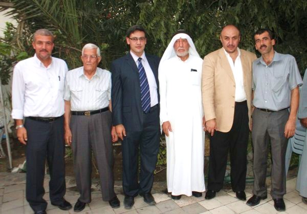 السادة: تمير تميم الأغا(ابن عم العريس)، أ. خالد(شقيق العريس)، أ. حمدي عودة وابنه المحامي محمد،