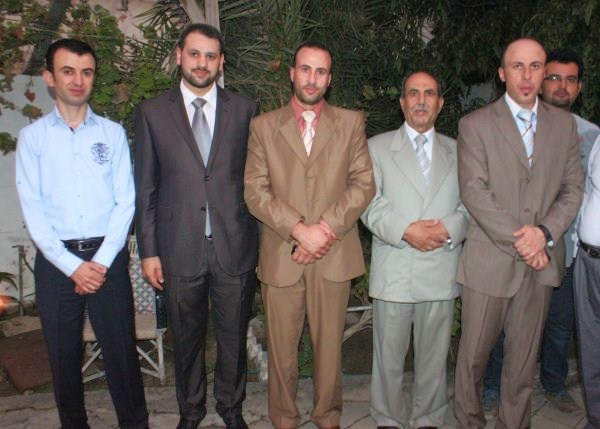 أ. حاسي الأغا، د. وسام مصطفى(شقيق العريس)، العم وديع، م. محمد و م. أحمد (شقيقا العروس)