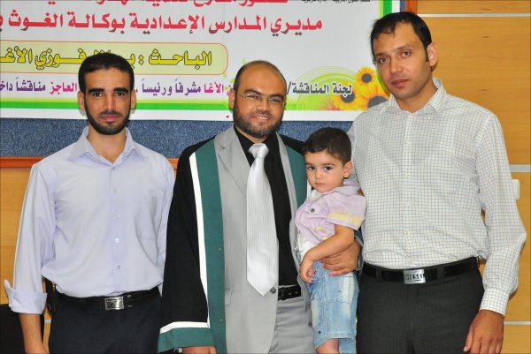 أ. عمار مصطفى الأغا(زوج شقيقة الباحث)، الباحث، والد الباحث وشقيقيه