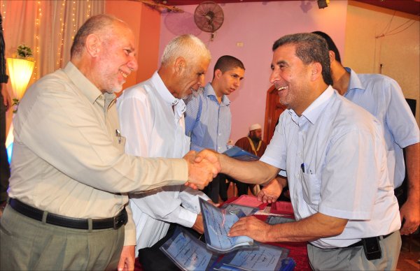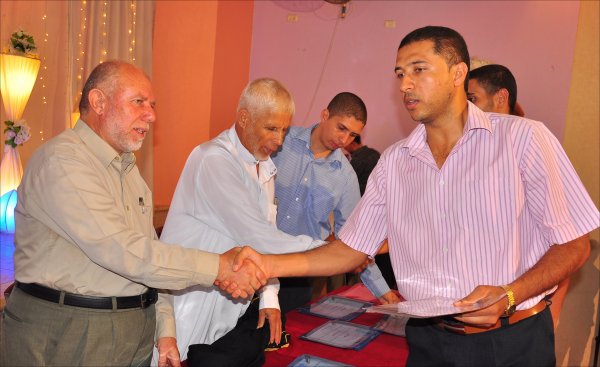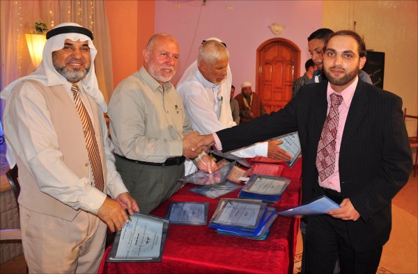 السادة: الشيخ رشاد النجار، الحاج عامر النجار ، أ.د. علي النجار(نائب رئيس جامعة الأزهر للشؤون الإدارية والمالية)