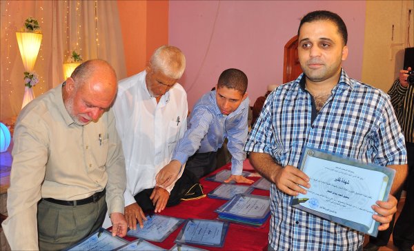 صالة السعادة- طريق رفح الغربية- خان يونس- الجمعة الموافق 30-09-2011، في جو بهيج ومشاعر فياضة، احتفلت عائلة النجار بكوكبة أقمار جديدة، حيث بلغ عددهم 320 خريج و خريجة من حملة الشهادات العليا، وضم الاحتفال خريجو الجامعات من العام 2000 وحتى 2011 ، وتخلل الحفل كلمة لمختار آل النجار، وكلمة الخريجين ألقاها د. بشار النجار، شكر فيها القائمين على الاحتفال ودعا الطلاب إلى بذل المزيد من الجهد من أجل تكريمهم بالأعوام المقبلة .