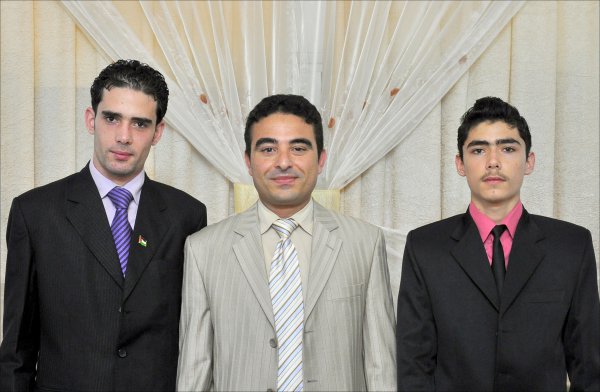 أ. أحمد القدرة(زوج شقيقة العريس)، يتوسط العريس وشقيقه هاشم