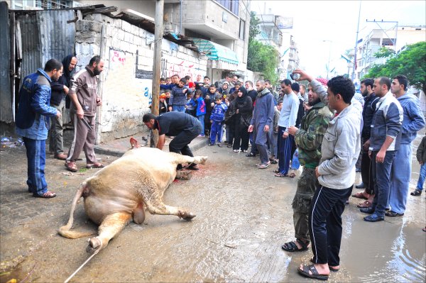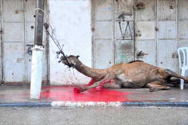 (فَصَلِّ لِرَبِّكَ وَانْحَرْ)، فبعد صلاة العيد وتبادل التهاني بهذا اليوم يتجه المواطنون لنحر أضحيتهم، وبقوم كل شخص بتجهيز الأضحية وطريقة ذبحها كما هو متاح لديه فتتخضب الأرض الطاهرة بالدماء ، فلن ينال الله منا لحومها ولكن يناله التقوى منا، كانت لعدستنا هذه التغطية الخاصية لمظاهر عيد الأضحى من داخل مدينتنا الحبيبة ، إضافة لبعض صور التجهيز لهذا اليوم من شراء ملابس وأدوات النحر، وشراء بعض المستلزمات .