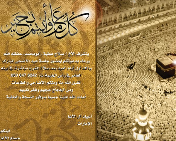 بدعوة كريمة من الأخ الكريم صلاح عطية "أبو محمد" حفظه الله ورعاه، توجه أبناء العائلة في الإمارات ملبين دعوة أخيهم الفاضل لحضور جلسة عيد الأضحى المبارك أعاده الله علينا وعليكم وعلى الأمة الإسلامية بحال أفضل وبصحة جيدة وبطاعات مقبولة إن شاء الله..