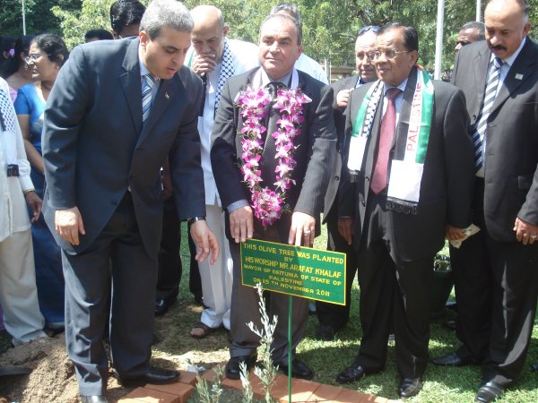 و قام السيد رئيس بلدية بيتونيا بصحبة عمدة كولومبو و محافظ المنطقة الغربية في سريلانكا السيد علوي مولانا، و السفير الفلسطيني لدى سريلانكا و المالديف د. أنـور الأغـا، و الوفد المرافق للسيد خلف بغرس شجرة زيتون في ساحة بلدية كولومبو، كان قد جلبها معه من فلسطين، كي يتم غرسها اليوم في ساحة البلدية في ذكرى إعلان إستقلال الدولة الفلسطينية، كرمز للسلام و المحبة و تعايش الشعوب.