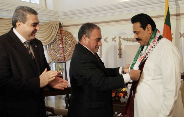 أطلع رئيس بلدية بيتونيا عرفات خلف اليوم فخامة الرئيس ماهيندا راجباكسهرئيس جمهورية سريلانكا على تطورات الأوضاع على الساحة الفلسطينية، و أطلعه على المستجدات حيال طلب فلسطين لنيل العضوية الكاملة لدى الأمم المتحدة، كما شكره على موقف سريلانكا الداعم تجاه قضيتنا و شعبنا الفلسطيني، و على تصويت جمهورية سريلانكا لصالح دولة فلسطين في نيل العضوية الكاملة لدى اليونسكو.