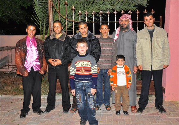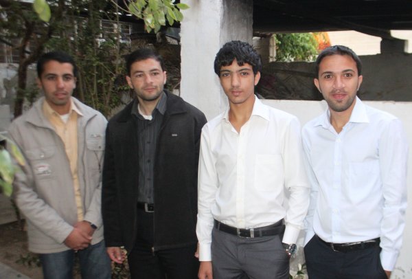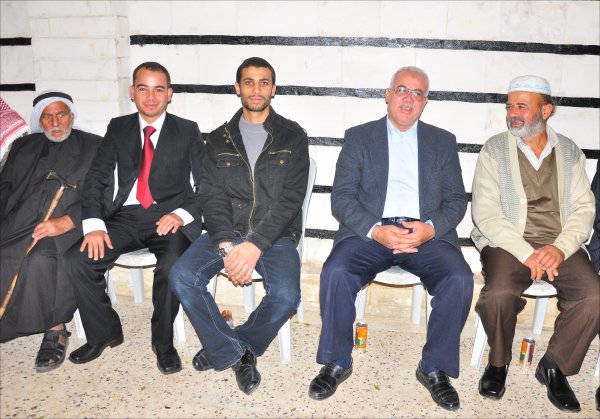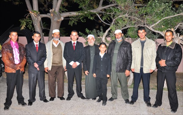 السادة: فؤاد عمر الأغا، الشيخ أيمن سليمان وادي، داود(شقيق العريس)، عبدالرحيم عمر وشقيقه محمد