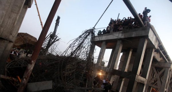لقي عاملان مصرعهما وأصيب أربعة آخرون، مساء الخميس، جراء انهيار جسر قيد الإنشاء بين منطقتي المغراقة والنصيرات وسط قطاع غزة.