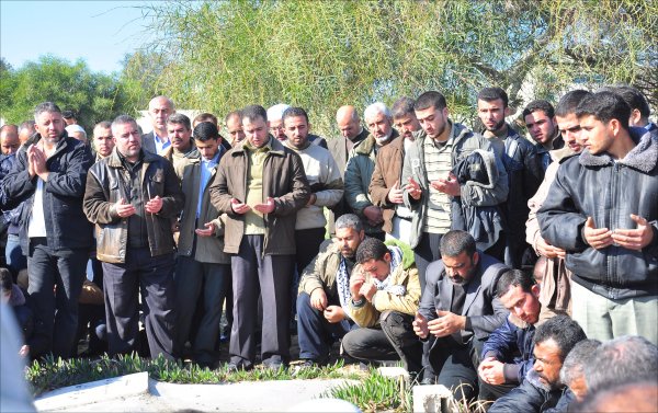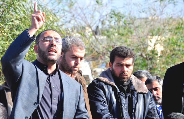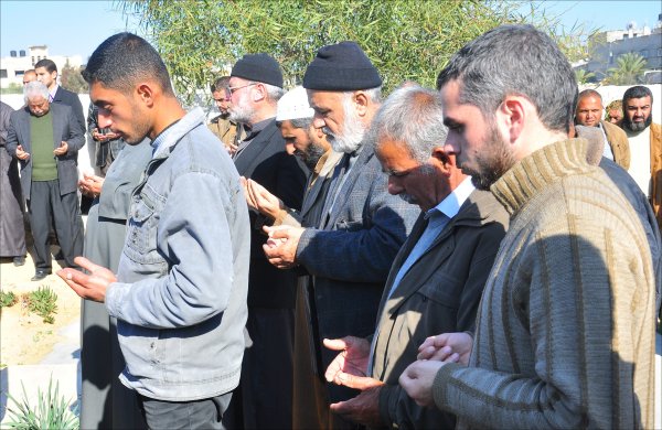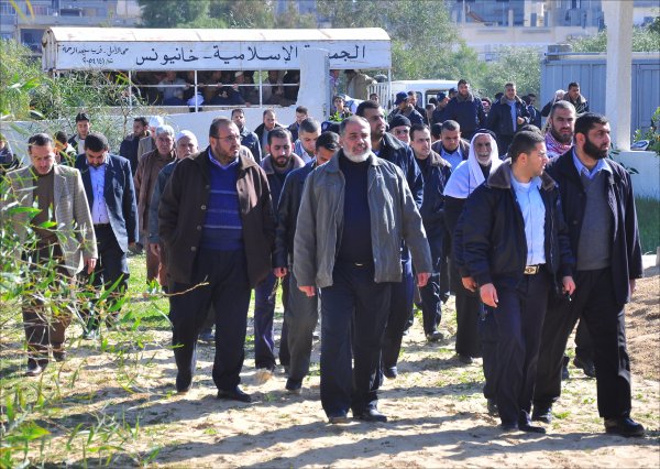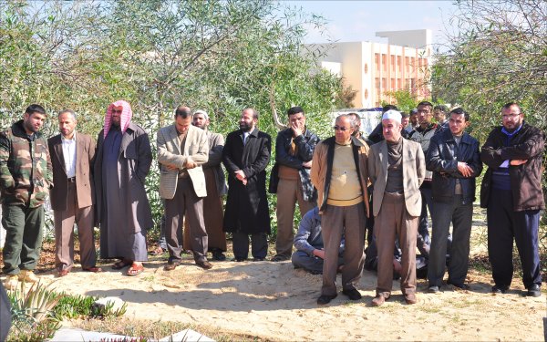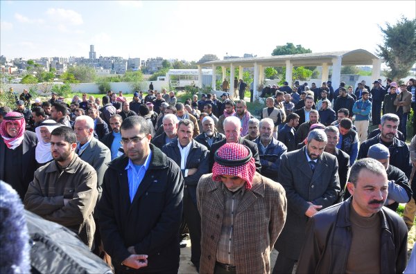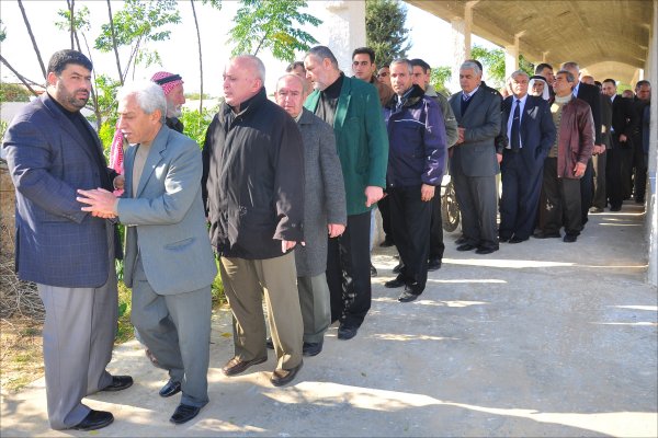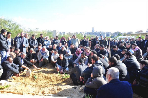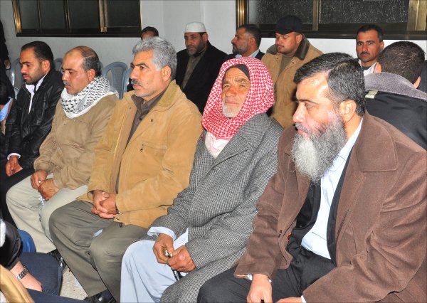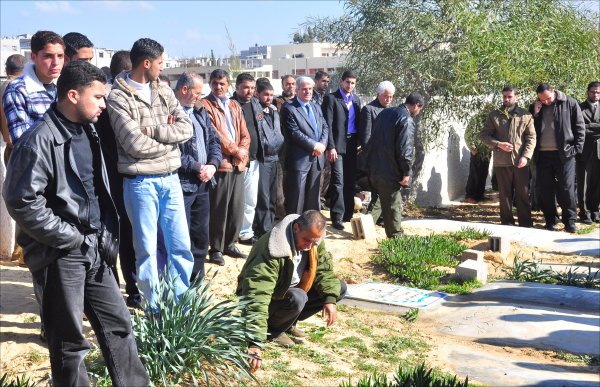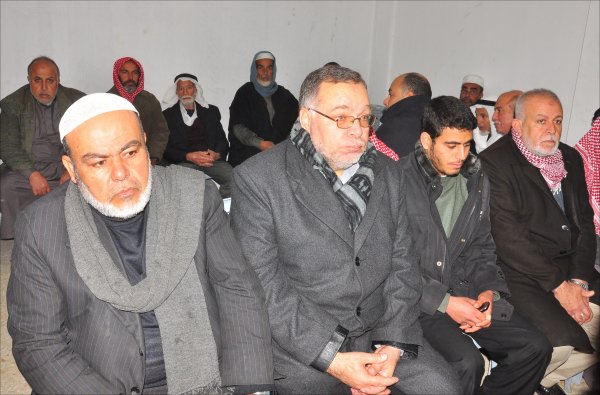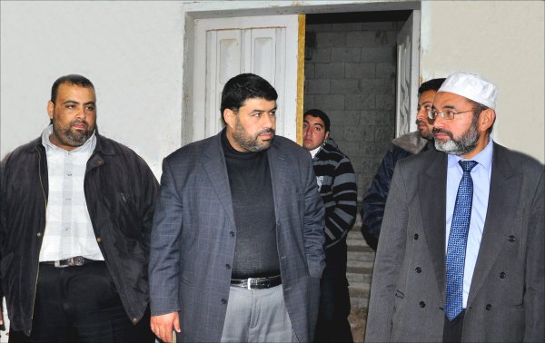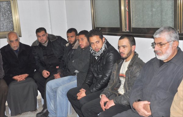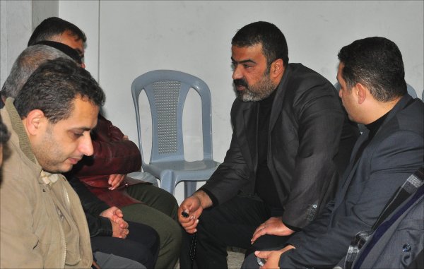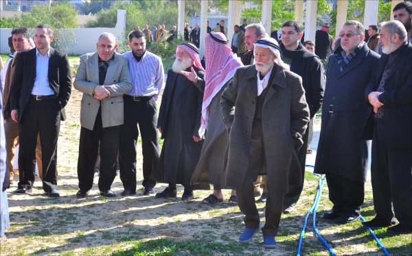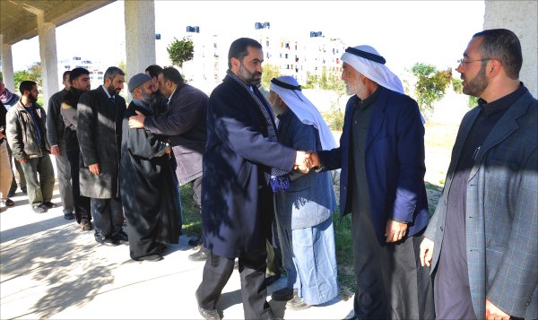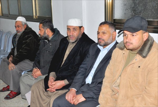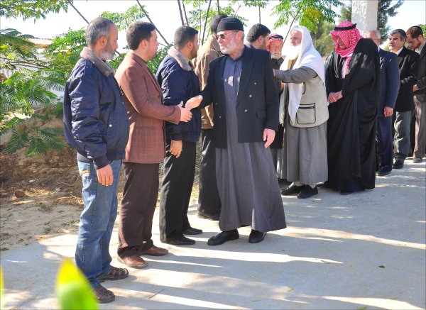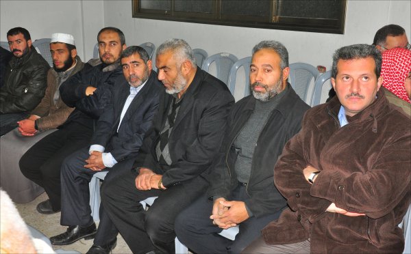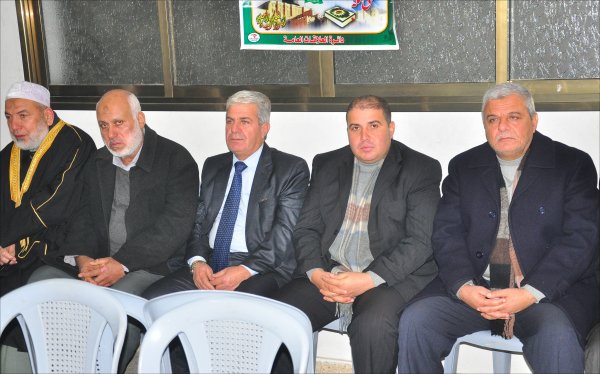 أحد المعزين، الشيخ سليمان الفرا، أ. إسماعيل محفوظ، د. صالح الرقب- وزير الأوقاف