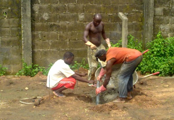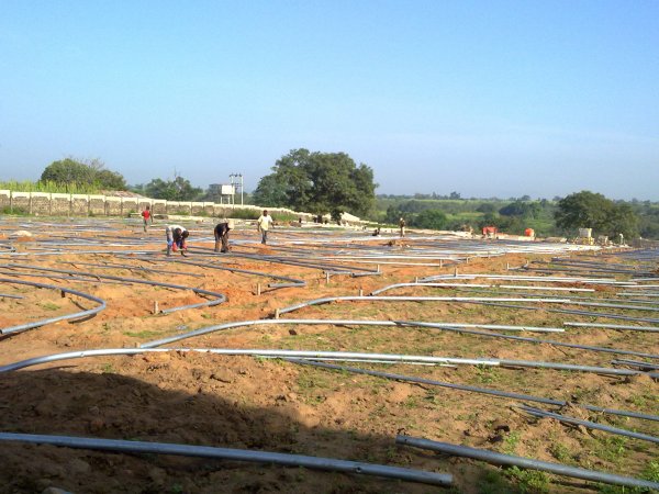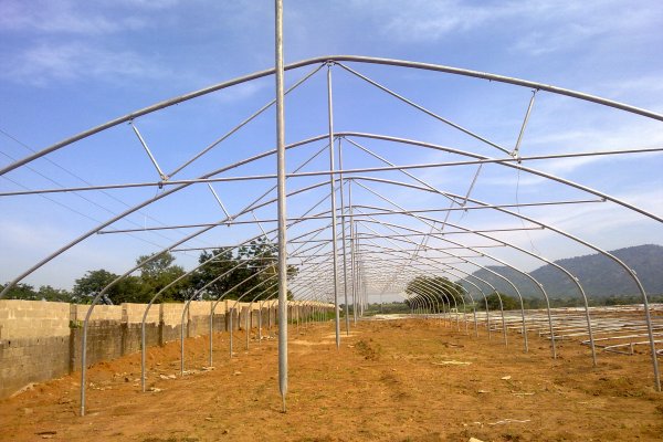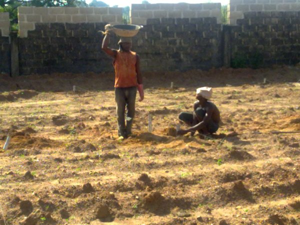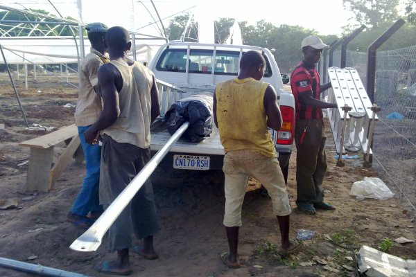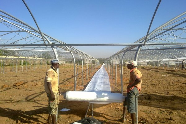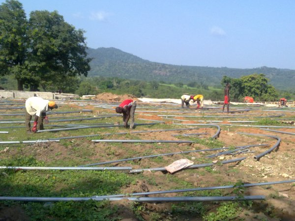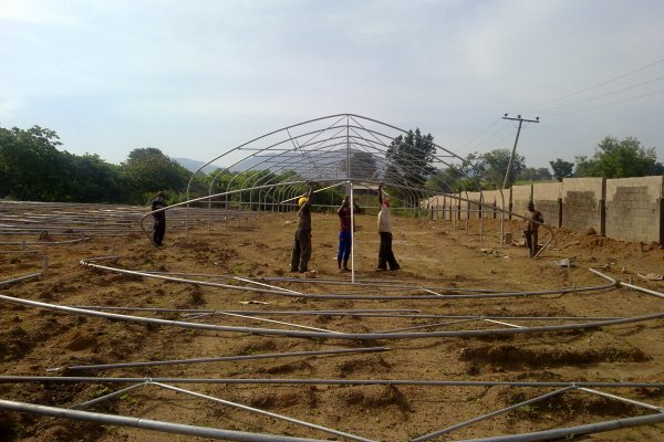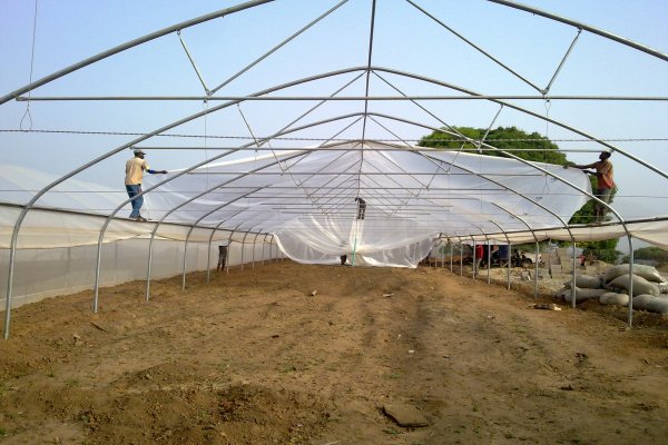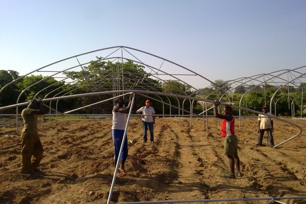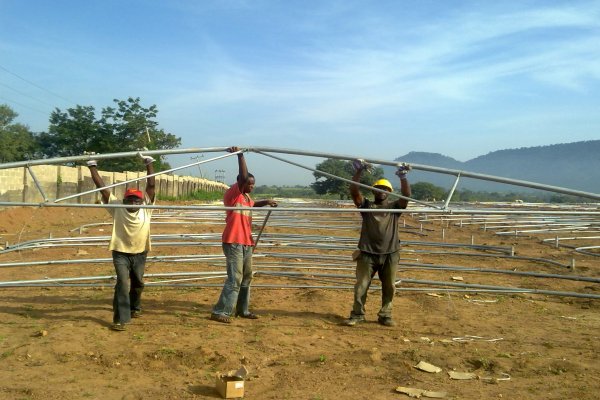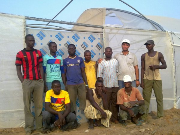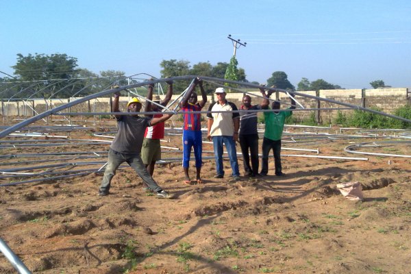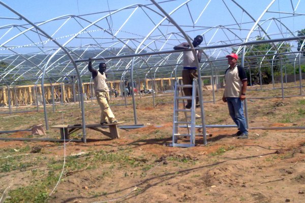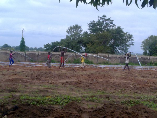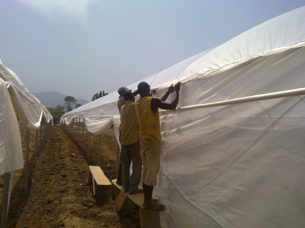 مرحلة تثبيت قواعد الدفيئات البلاستيكية(عمال نيجيريون)