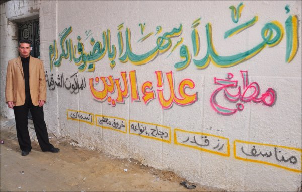 خانيونس- البلد- مقابل السنترال القديم (مدرسة ابن خلدون ) السبت الموافق 14-01-2012، تم بحمد الله افتتاح مطبخ علاء الدين للمأكولات الشرقية