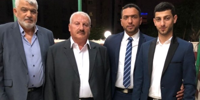 أ. معاذ الحلبي، علاء سمير الأغا، د. بهاء عبدالله الأغا، عماد عطية الأغا ونجله أحمد