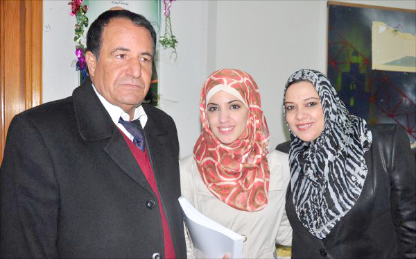 الطالبة تتوسط والديها