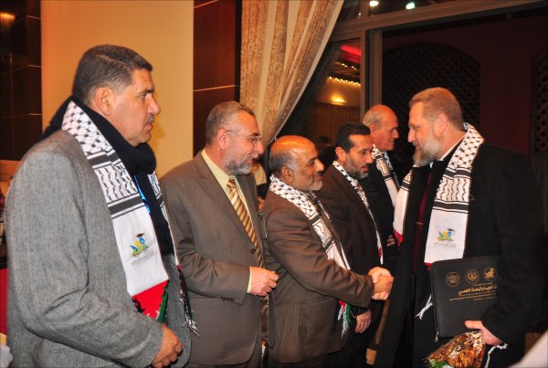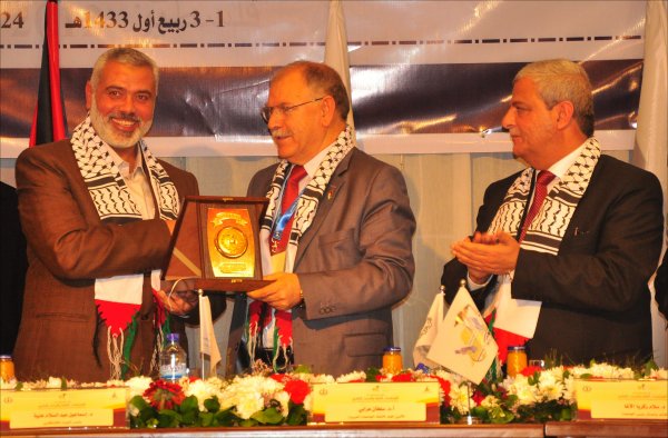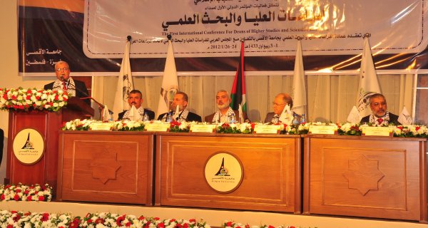 قاعة منتجع الشاليهات- غزة- الثلاثاء الموافق 24-01-2012، افتتاح المؤتمر الدولي الأول لعمداء الدراسات العليا والبحث العلمي، والذي يشارك فيه 150 باحثاً فلسطينياً وعربياً ومن مختلف دول العالم، وذلك بحضور رئيس الحكومة الفلسطينية في غزة إسماعيل هنية، وأعلن هنية خلال المؤتمر عن موافقته على المقترح الذي قدمه شاكر نصير الدين بإنشاء رابطة علماء من اجل فلسطين، ويكون مقرها المؤقت بغزة والدائم بالقدس، ودعا إلى عقد اتفاقيات عبر الأمانة العامة لاتحاد الجامعات العربية توأمة بين الجامعات العربية والفلسطينية وهذا شكل من كسر الحصار العلمي ومواجهة سياسة الاحتلال من عزل الجامعات الفلسطيني.