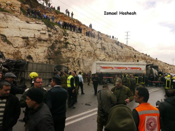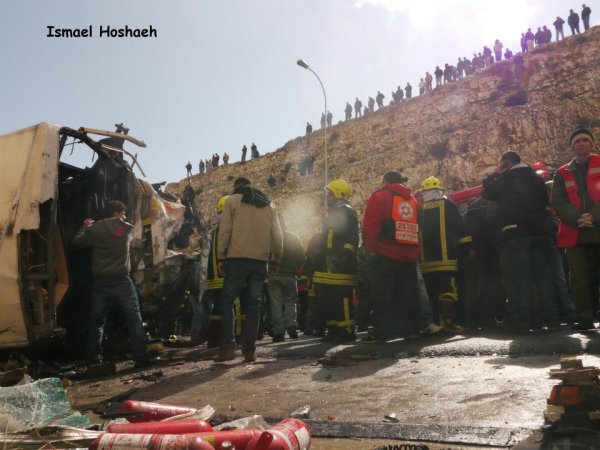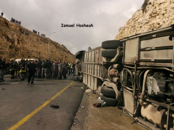 رام الله- خاص معا- هكذا تحولت الرحلة المدرسية إلى كارثة حقيقية، طلاب مدرسة وروضة نور الهدى المقدسية في عناتا، كانوا يستعدون للّهو والمرح في رام الله، ولكن الموت خطفهم حين ذهبوا ضحايا لحاث سير.ستة أطفال شهداء فقدوا حياتهم في حادث سير، حين انحرفت حافلتهم عن مسارها جراء عدم سيطرة سائق على شاحنته نتيجة السرعة وتساقط الأمطار الغزيرة فاصطدم بحافلتهم التي كانت في طريقها إلى رام الله فقلبها على جانبها ثم اشتعلت فيها النيران.ولحسن حظ بعض الطلاب صغار السن الذين تتراوح اعمارهم بين الرابعة والنصف والخمس سنوات، فإن سيارة كانت تسير خلف الحافلة لحظة حدوث التصادم، كانت في طريقها من الخليل إلى رام الله، فترجل الشبان منها، ومنهم من تمكن من تحطيم نوافذ حافلة الطلاب، وإنقاذ ما يمكن إنقاذه من الطلاب، وتمكن بعضهم من الهروب من الحافلة، لينجو من موت محقق، في حين قام آخرون باستدعاء إسعاف جمعية الهلال الأحمر والدفاع المدني والشرطة الفلسطينية.ثلاثة وستون طالباً ومعلمة كانوا في الحافلة الأولى التي تعرضت للحادث، إلا أن حافلة أخرى كانت تسير خلفها، وبعد الحادث عادت إلى أدراجها، للحفاظ على أرواح من فيها.ولسوء حظ بعض الطلاب، فإن النيران اشتعلت في الحافلة، مما أدى إلى وفاة عشرة طلبة وتفحم جثثهم، في حين ترقد إحدى المعلمات في مجمع فلسطين الطبي بين الحياة والموت، أما السائقان فقد نقلا بسيارة إسعاف إسرائيلية إلى أحد مشافي القدس، وعلم أن أحدهما قد بترت رجلاه. عشرة أطفال ومدرّسة فقدوا حياتهم جراء حادث سير، كانوا في طريقهم ليمضوا يوماً جميلاً، ولكن جنون السائقين أوقعهم ضحايا، وخطف زهرة حياتهم. أهالي بعض الطلاب وصلوا إلى مكان الحادث، واشتبكوا مع جيش الاحتلال، الذين حاولوا منعهم، فكان التدخل الحضاري من قبل الشرطة الفلسطينية ورجالات الدفاع المدني والهلال الأحمر الذين كانوا يدركون حجم فاجعة الأهالي، وقدموا لهم المساعدة، والطمأنينة.