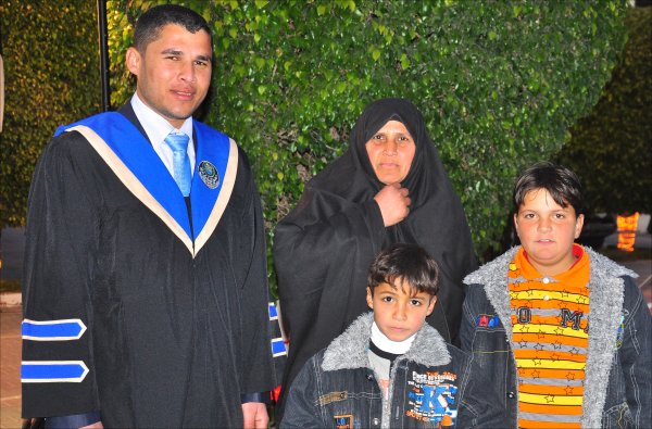 محمد أشرف الأغا وشقيقه شريف، الخريج ووالدته
