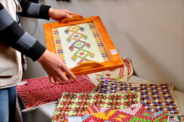 المشغولات اليدوية- مفارش وصينيات مطرزة