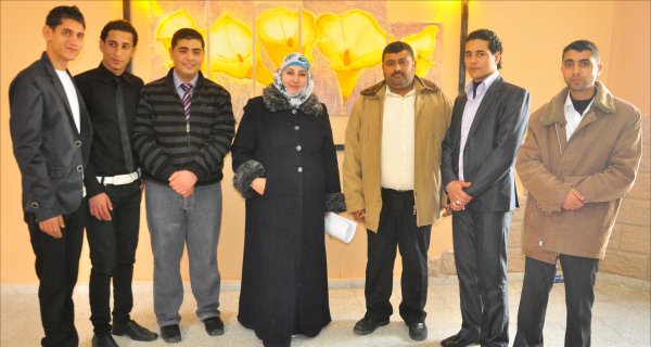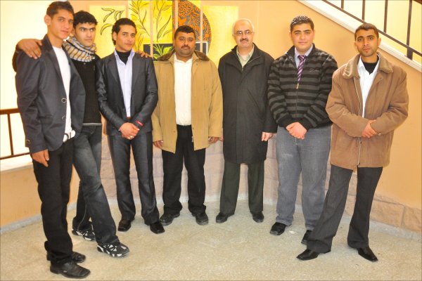 عميد الكلية يتوسط الطالبان: محمد محمود الأغا وخليل عصام الأغا