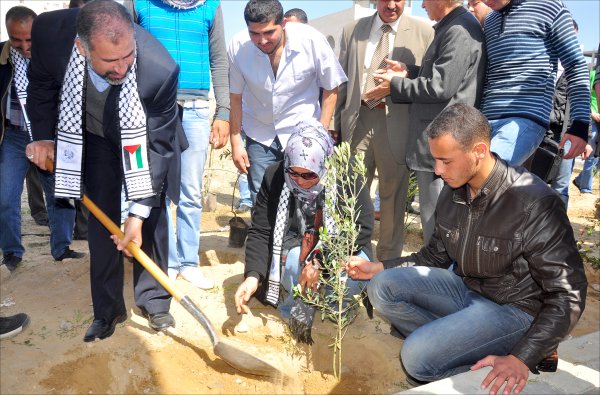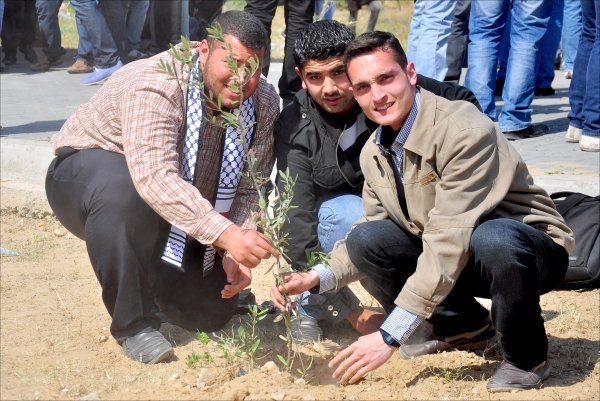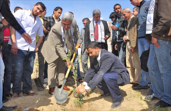 كلية الزراعة والبيئة- جامعة الأزهر- الكتيبة- غزة- الأحد الموافق 01-04-2012 نظمت كلية الزراعة والبيئة يوماً لإحياء ذكرى الأرض بحضور أعضاء هيئة التدريس ولفيف من الطلبة ، وبدأ الاحتفال بآيات عطرة من القران الكريم ، وأكد د. عبدالرازق سلامة عميد الكلية إلى أهمية هذا اليوم في حياة الشعب الفلسطيني كمناسبة يتم فيها تجديد العهد مع أرضه وثوابته، مشدداً على أن هده المناسبة مناسبة وطنية لاستعادة الحقوق الفلسطينية والثورة ضد المحتل الغاشم، وللتأكيد على الثوابت الفلسطينية. ومن جهته شكر د. علي رشيد النجار نائب الرئيس للشؤون الإدارية والمالية هذه الوقفة من طلبة الكلية وأضح أن يوم الأرض هو يوم مفصلياً في حياة الشعب الفلسطيني منذ عام 1948م. وأنه يوم المجد ويوم العزة والكرامة ويوم التشبث في الأرض حتى دحر الاحتلال ، وفي نهاية اللقاء تم زراعة أشجار الزيتون .