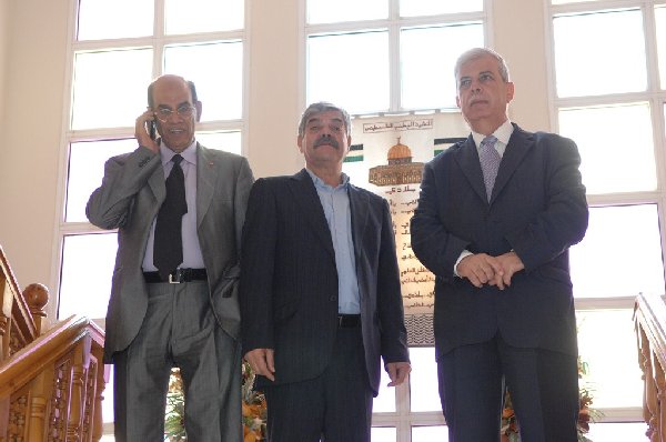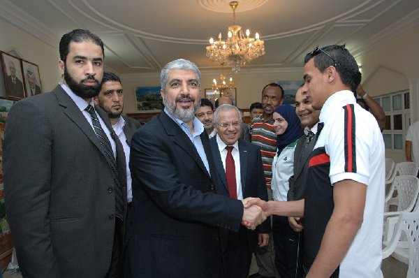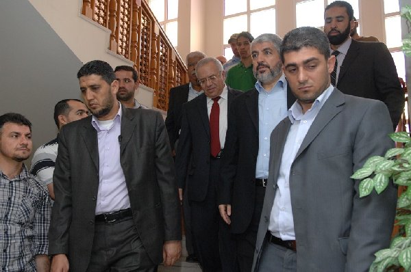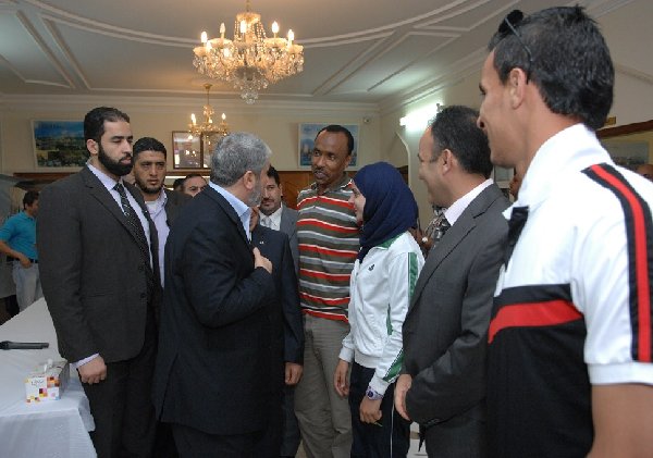 وكان في استقبال السيد / خالد مشعل السفير منير غنّام والدكتور/ يحيى الأغا وأعضاء السفارة.
