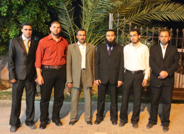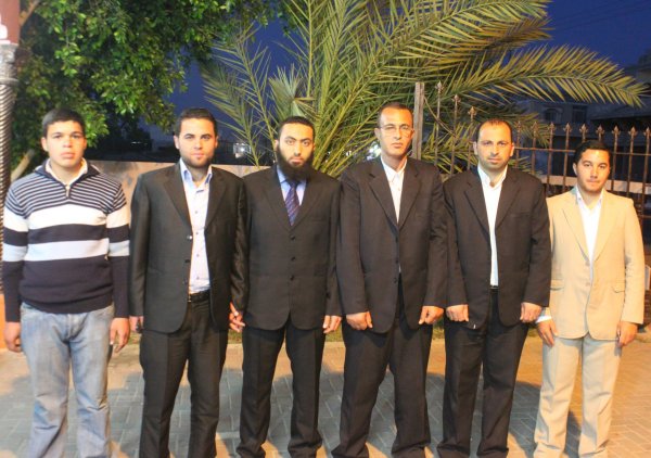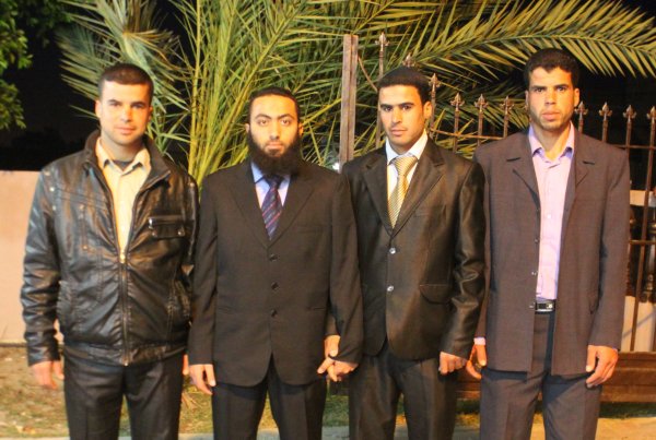 أ. محمد العويطي (زوج شقيقة العريس)، أ. حمادة يونس الأغا، العريس، أ. محمد ابراهيم الأغا،