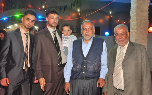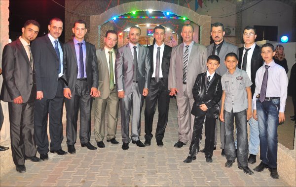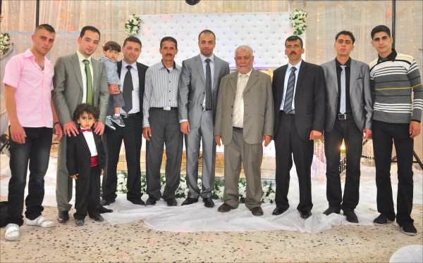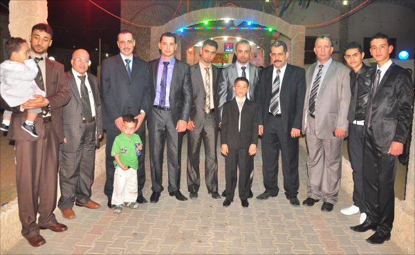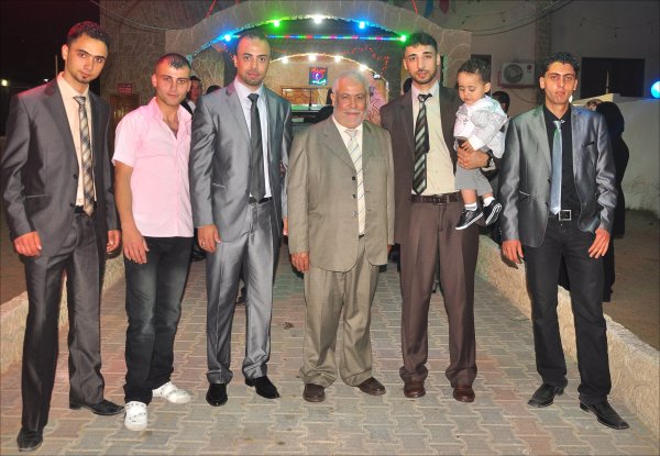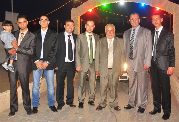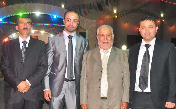 أ. علي محمد الأغا(زوج شقيقة العريس)، والد العريس، العريس، فايز(شقيق العروس)،