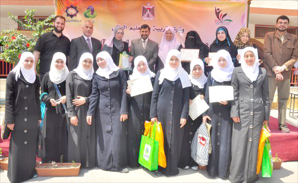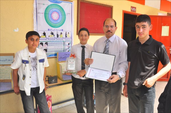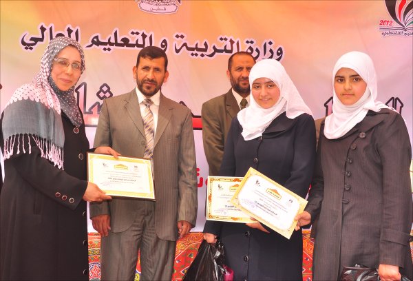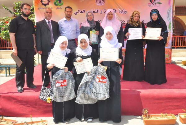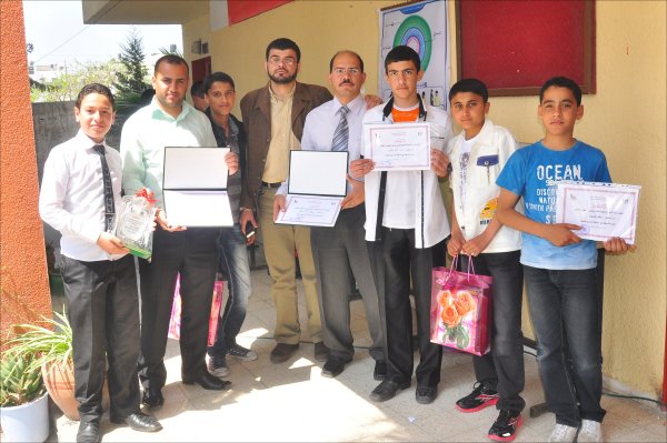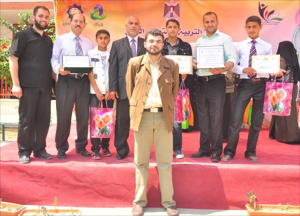 مدرسة الرملة الأساسية للبنات- مديرية شرق غزة- غزة- الأربعاء الموافق 09-05-2012 كرمت وزارة التربية والتعليم عدداً من المدارس والطلبة الفائزين في المشاريع العلمية ومسابقتي الروبوت و أصدقاء المختبر وذلك خلال الحفل الختامي الذي أقامته مديرية التربية والتعليم شرق غزة بمدرسة الرملة للبنات. وحضر الحفل د.زياد ثابت الوكيل المساعد للشئون التعليمية , أ.محمد صيام مدير عام الإدارة العامة للأنشطة التربوية ,أ. عماد الحديدي مدير عام التقنيات التربوية ,أ. محمود أبو حصيرة مدير التربية والتعليم شرق غزة و نائبه الإداري أ. مازن نور الدين ,أ. عبد القادر أبو على مدير التربية والتعليم غرب غزة , أ.محمود شاهين ممثلاً عن المركز الثقافي الإسلامي ,أ.رفيق الفالوجي ممثلاً عن شركة جوال بالإضافة إلى عدد من المشرفين التربويين ومدراء و مديرات المدارس و عدد من المعلمين والمعلمات والطلبة الفائزين. و في كلمته رحب د. زياد ثابت بالحضور معرباً عن سعادته لمشاركته في هذا الاحتفال العلمي والذي يتميز بمحتواه العلمي التطبيقي حيث يعد الأول على مستوى الوزارة مشيراً إلى أهمية هذه المشاريع العلمية والتي تهدف إلى تفجير الطاقات الإبداعية عند الطلبة و تعليمهم كيف يتساءلون عن المعرفة وأين هي مصادرها وكيفية الوصول إليها ،لافتا النظر إلى أن العملية التعليمية لدى المعلمين يغلب عليها الجانب النظري ،منوهاً إلى أنه لا بد من ترسيخ الجانب التطبيقي إلى جانب تكريس المنهج العلمي وذلك للنهوض والارتقاء بالعملية التربوية و التعليمية من جميع جوانبها. وشكر د.ثابت كل من ساهم وقدم الدعم لهذه المشاريع سواءً بالدعم المادي أو المعنوي كما تقدم بالشكر والتقدير لكل من المركز الثقافي الإسلامي وشركة جوال على رعايتهما لحفل التكريم. بدوره رحب أ.محمود أبو حصيرة بالحضور مثمناً جهود القائمين على المشاريع ومشيراً إلى أن المديرية حققت العديد من الانجازات, و أن هذا الانجاز يعتبر واحداً منها مؤكداً في الوقت ذاته على أهمية هذه المشاريع و التي تخرج بالطالب ليحلق في سماء الإبداع و الخروج به من المرحلة التقليدية إلى مرحلة التجارب العلمية التعليمية مضيفاً أنه لا بد من العمل على تغيير أسلوب العملية التعليمية وذلك للنهوض والارتقاء بها ,وفي ختام كلمته توجه بالشكر لجميع من ساهم في إنجاح هذه المشاريع. الجدير بالذكر أن مديرية التربية والتعليم شرق غزة قد حصدت "6" مراكز أولى من أصل "10" على مستوى الوزارة والمديريات السبع. وقد فازت مدرسة ابن خلدون ، ومدرسة عبدالله أبو ستة في هذه المشاريع .
