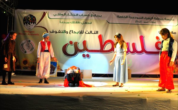 مدرسة الزهراء النموذجية الخاصة- مدينة الزهراء- غزة- الخميس الموافق 10-05-2012 أقامت مدرسة الزهراء النموذجية الخاصة اليوم الخميس مهرجان فلسطين الثالث للإبداع والتفوق ... وتضمنت الحفل مجموعة من الفقرات الترفيهية المنوعة وتخريج طلبة كل من روضة الزهراء وروضة المبدع الصغير... كما ضم المهرجان مسابقة برنامج حساب الذكاء العقلي والتي ضمت 218 طالب من مختلف المستويات, ونال الحفل رضا الجميع وكان في منتهى الروعة.