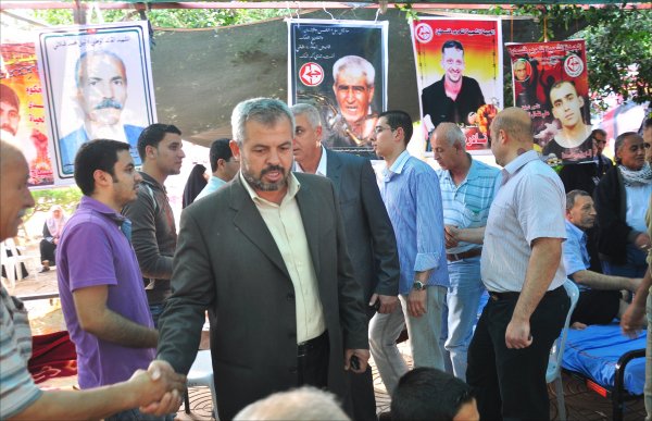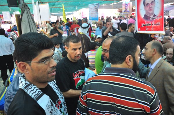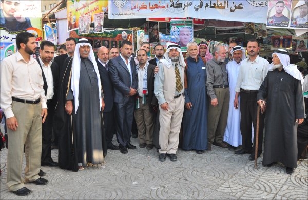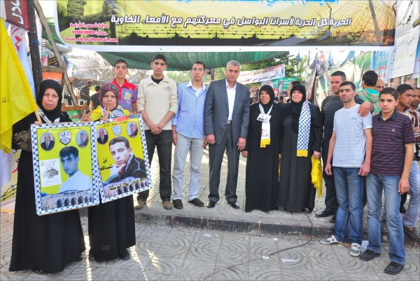 ميدان الجندي المجهول- غزة- الاثنين الموافق 14-05- 2012 حمل أ. عبد الرحمن النجار المتحدث باسم تجمع عائلات خان يونس العدو الصهيوني والعالم كامل المسؤولية عن حياة الأسرى داخل السجون الإسرائيلية لليوم الثامن والعشرين على التوالي، وانطلقت المسيرة من خان يونس ممزوجة بكافة ألوان الطيف السياسي تجمعهم رابطة الدم ورابطة الأخوة، حضروا مجتمعين شيوخاً وأطفالاً صبيان وشباباً و سيدات للمشاركة في خيمة الاعتصام والتضامن مع الأسرى المضربين عن الطعام لليوم الثامن والعشرين،، وقال بأن الأسرى يخوضوا أكبر معركة تاريخية يدافعون عن كرامة الشعب الفلسطيني وعن الأمتين العربية والإسلامية بأرواحهم وأجسادهم، وأكد على صمود ووقوف الأهالي مع قضية الأسرى قلباً وقالباً مؤازرين غير فارين .