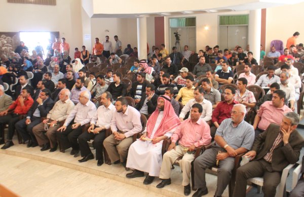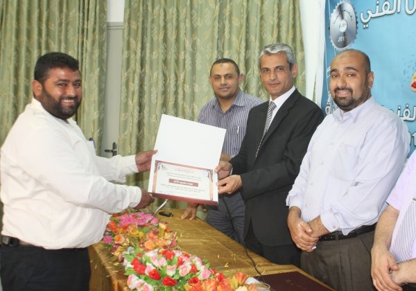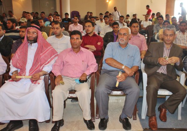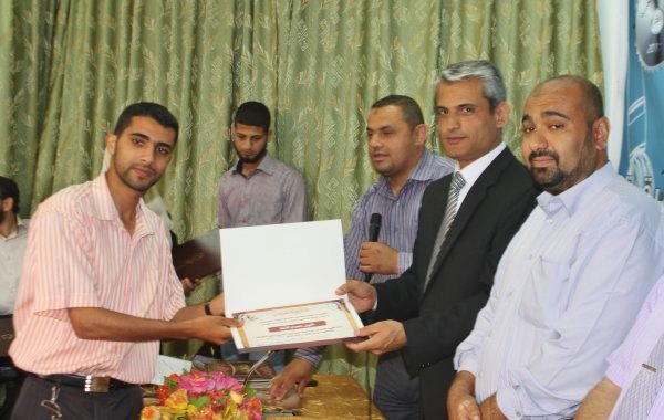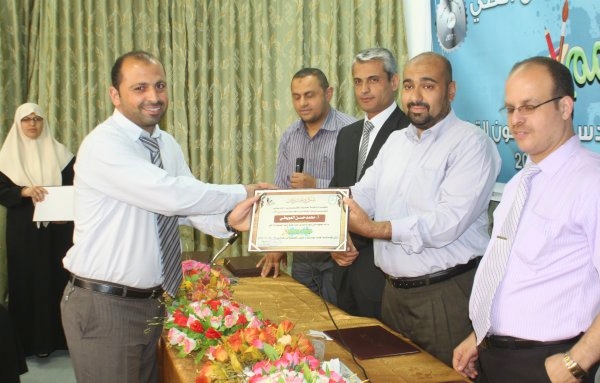 أ. نضال أبو حجير، أ. فريد عامر ، أ. عبد ربه قديح(مدير معهد الأزهر الديني)، د. محمد فروانة