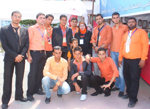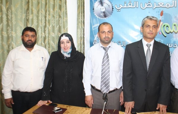 أ. محمد حسن العويطي(مشرف المعرض)، الطالب محمد محمود الأغا، أ. بسام النجار،