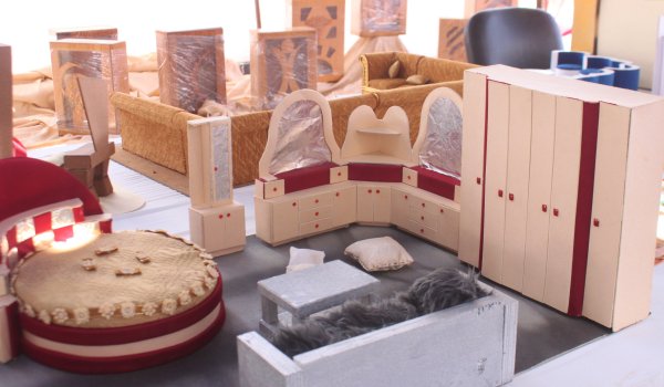إلى ذلك, قامت الشخصيات الحاضرة وإدارة الكلية بقص شريط افتتاح المعرض الفني الذي يضم قطع أثاث ومجسمات هندسية ورسومات بالفن التجريدي من تصاميم وإبداعات الطلبة.