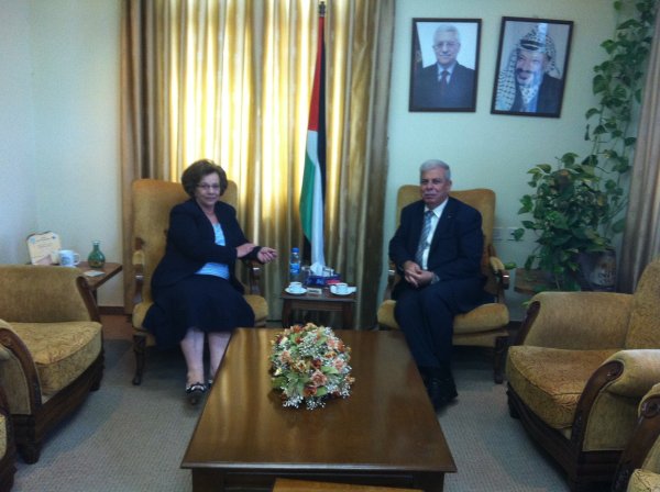 فلسطين - رام الله- استقبلت معالي الأستاذة / لميس العلمي وزيرة التربية والتعليم الفلسطينية بمكتبها في رام الله الدكتور / يحيى زكريا الأغا المستشار بالسفارة الفلسطينية بالدوحة ، نقل خلالها تحيات سعادة السفير الفلسطيني منير غنام، وإدارة ومدرسي المدرسة الفلسطينية بالدوحة، وقدّم لها الشكر على ما تقوم به من تسهيلات للمدرسة الفلسطينية في جميع المجالات التي من شأنها رفع كفاية المدرسة للأفضل.