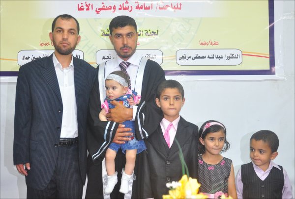 أ. وصفي رشاد الأغا، منذر شراب، أسامة النجار، محمد وعبدالله حمدان الأغا ووالدهم ،