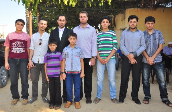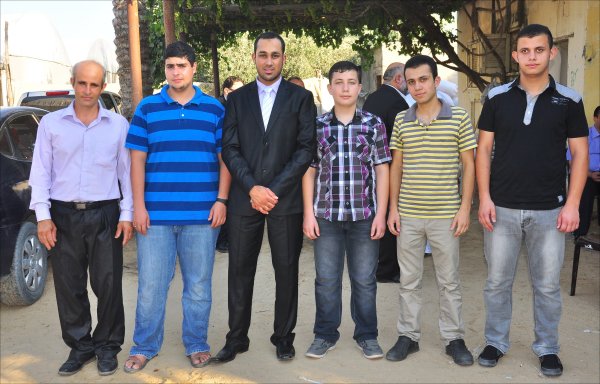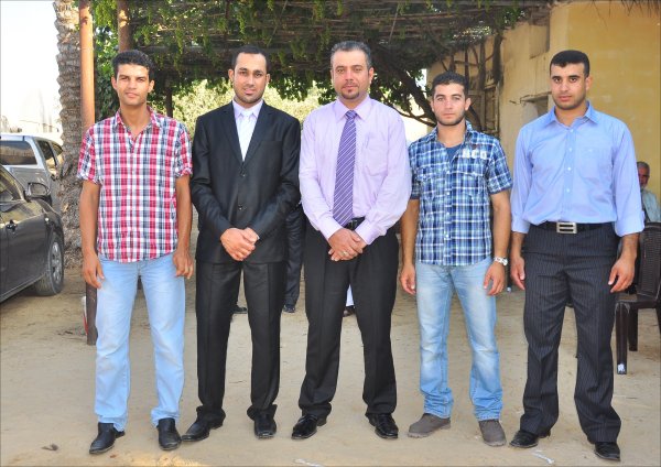 م. ياسين الأسطل، أ. حمدي عودة الأغا ونجله محامي محمد، العريس، أ. سعد عمر الأغا