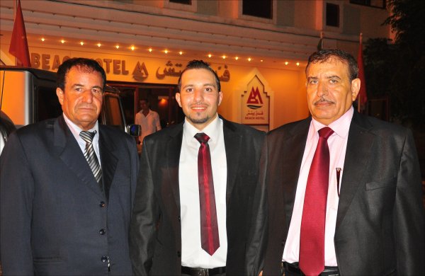 العدايل : أ. علي يوسف الأغا، م. فوزي البطة(والد العريس)، محامي جهاد الأغا(والد العروس)،