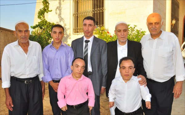 العريس يتوسط أعمامه ووالده وأشقائه