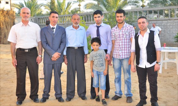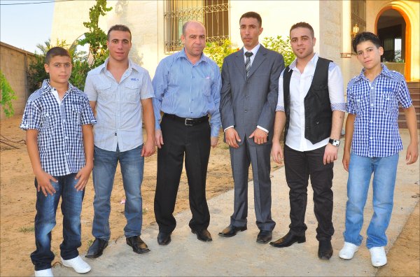 ا. أحمد(شقيق العروس)، بدر النخالة وشقيقيه ووالدهم، العريس، .أ محمد عيد الأغا