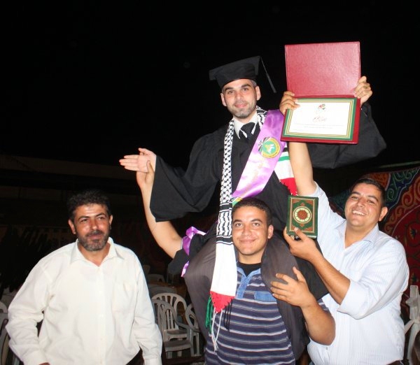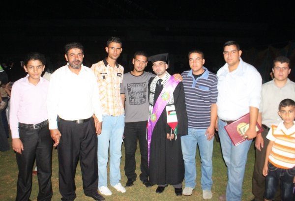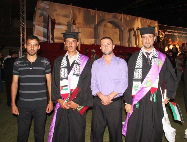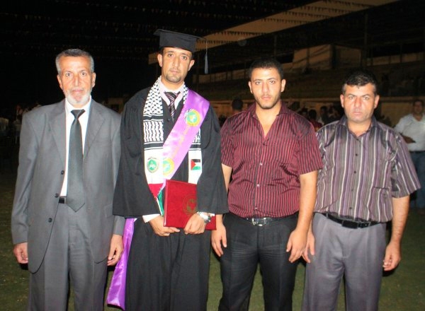 ملعب المدينة الرياضية خان يونس- الخميس الموافق 12-07-2012، احتفلت جامعة القدس المفتوحة فرع خان يونس بتخريج دفعة جديدة من طلبتها لكافة التخصصات والبرامج، والذي أطلقت عليه اسم فوج (الحرية للاسرى) وقد حضر الحفل العديد من الشخصيات الاعتبارية ورؤساء الجامعات وعمداء الكلية ورؤساء البلديات، وأعضاء الهيئتين الإدارية والأكاديمية في الكلية وحشد كبير من ذوي الطلبة الخريجين. وقد تضمن الخريجين مجموعة من طلبة عائلتنا.