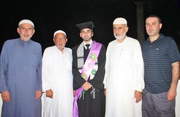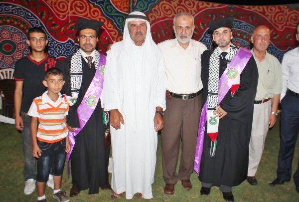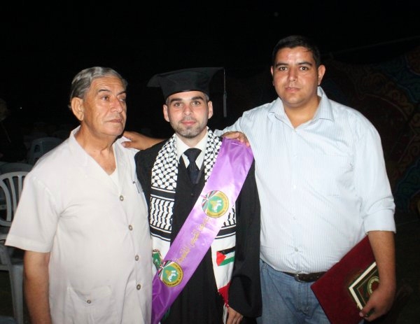 أ. واجد وشقيقه أ. عبد الكريم وابنه الخريج محمد، الحاج فتحي قاسم الاغا، د. وجيه (عم الخريج)