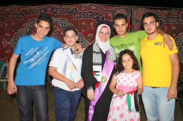 الخريجة تتوسط ابنائها حمدومحمد وسعاد ورامي ومروان