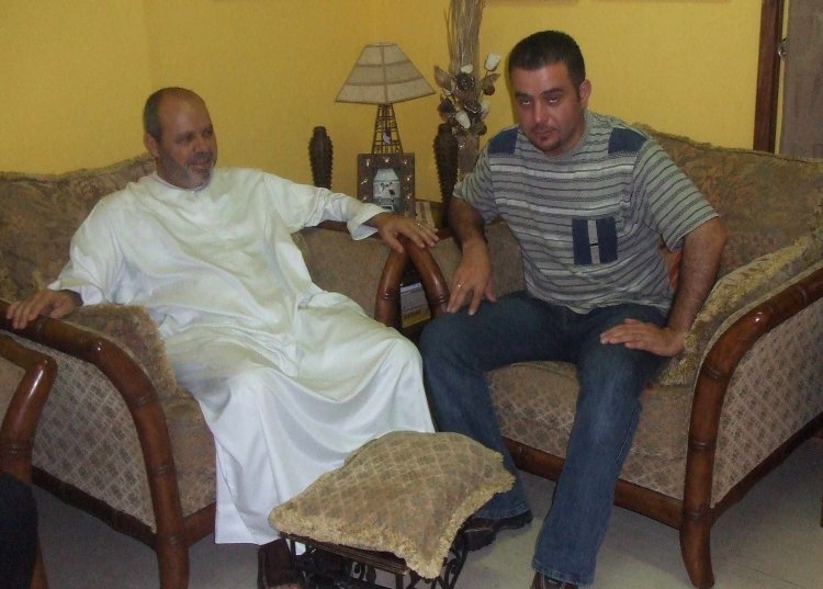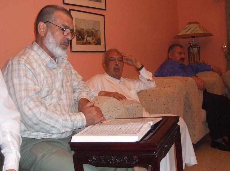 (1) السيد محمد نايف الأغا، السيد الحج فتحي الأغا، السيد عصام مهدي الأغا اثناء تلاوة القران الكريم