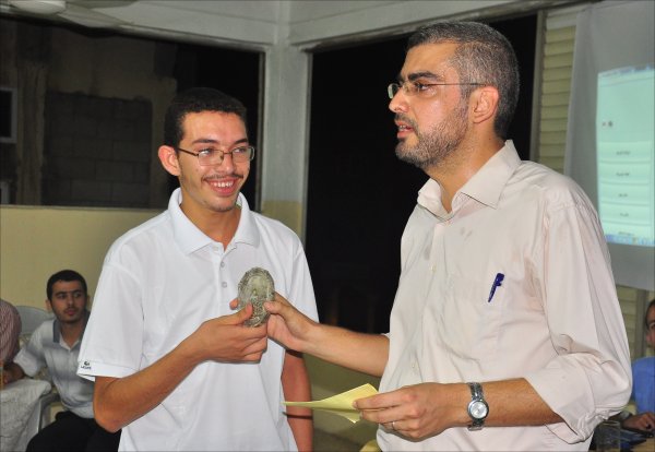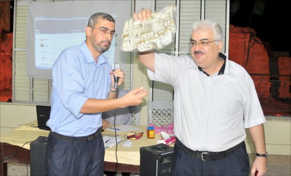 محمد فتحي الأغا وفاز بمجسم لقبة الصخرة مقدم من مطبعة السراج