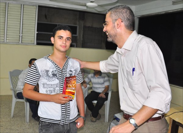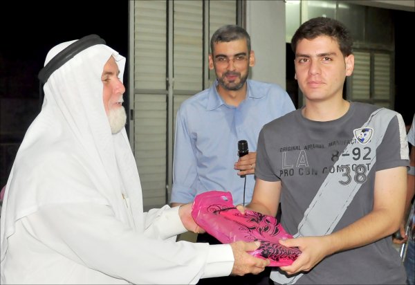 محمد مروان الأغا وقد فاز بمجسم لقبة الصخرة مقدم من مطبعة السراج