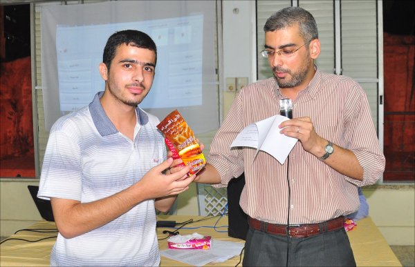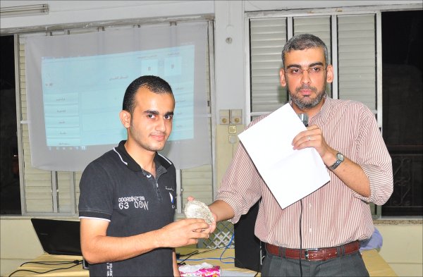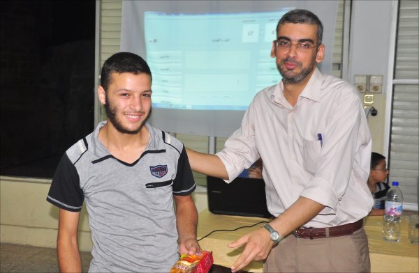 أ. خالد احمد الأغا وقد فاز بجائزة مجسم مقدم من مطبعة السراج