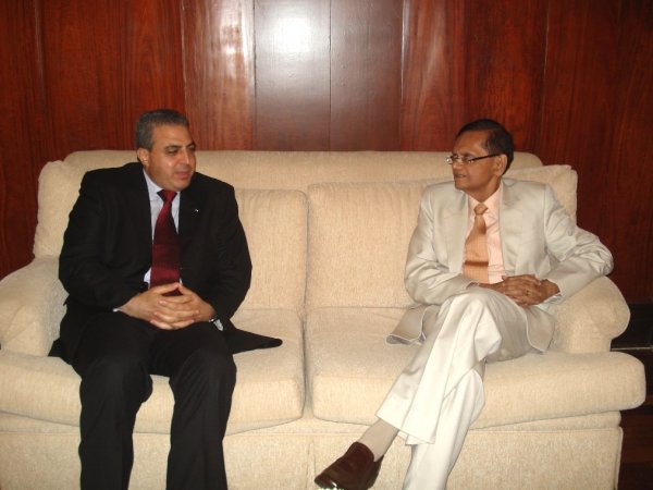 أطلع د. أنـور الأغـا سفير دولة فلسطيني لدى سريلانكا و المالديف البروفسور جاميني لاكشمان بيريس وزير الشؤون الخارجية في جمهورية سريلانكا، على مستجدات الأوضاع على الساحة الفلسطينية، و الظروف الصعبة التي يمر بها شعبنا في ظل الإحتلال الإسرائيلي و ممارساته التعسفية المتواصلة في مختلف محافظات الوطن، و بخاصة في مدينة القدس التي تتواصل بها عملية مصادرة الأراضي و التوسع الإستيطاني و هدم المنازل و منع المصلين للوصول إلى المسجد الأقصى المبارك.